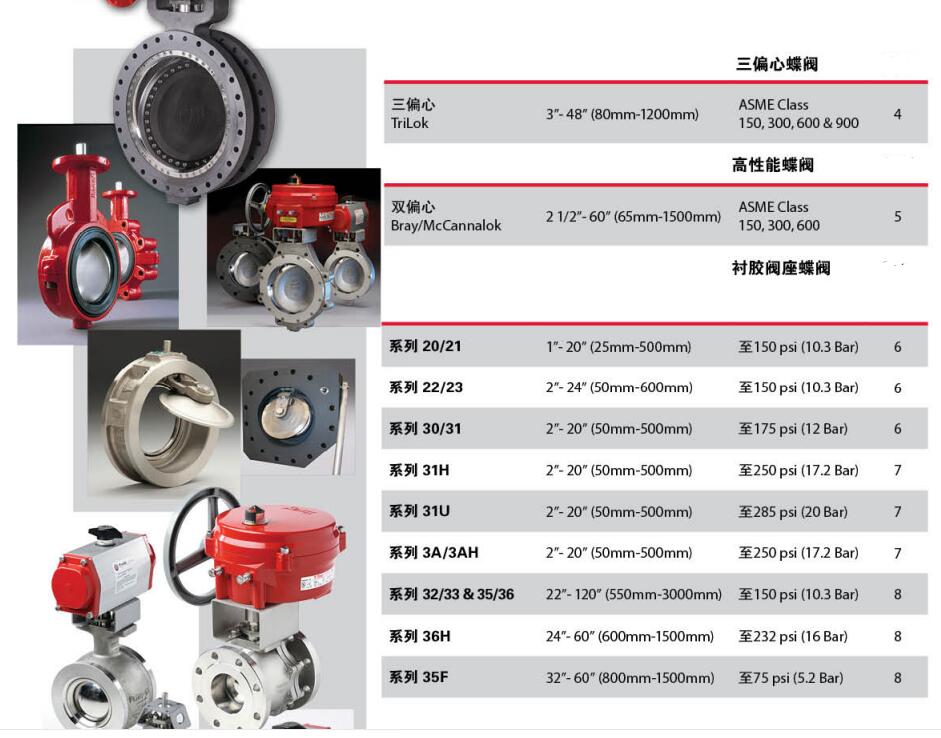 产品详情:美国博雷brayS30和S31系列蝶阀的产品参数: